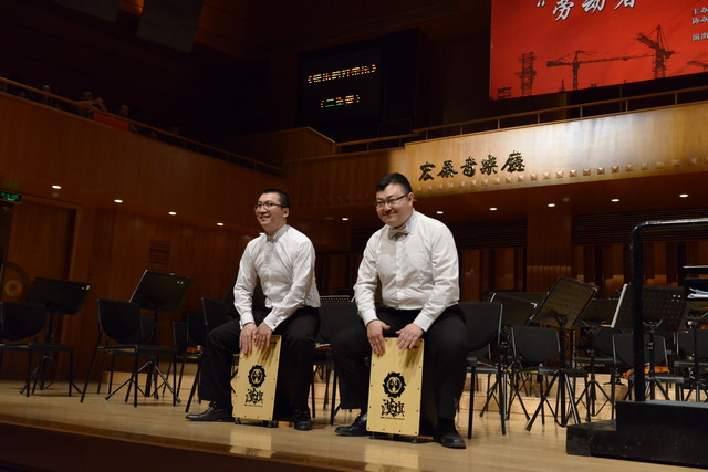 音樂會還穿插了打擊樂表演,贏得笑聲一片