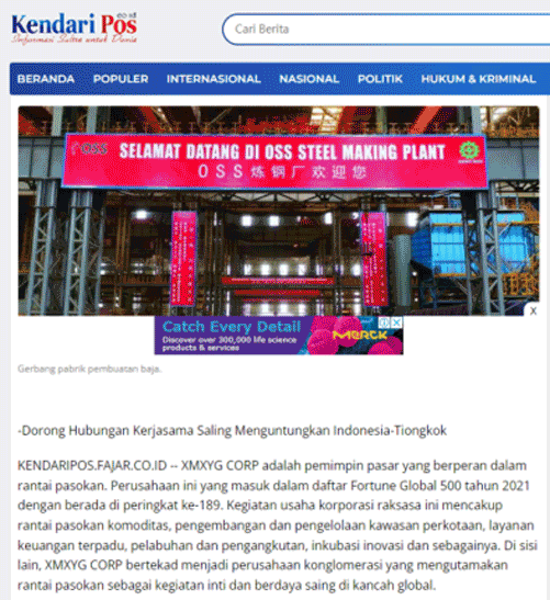 ▲象嶼集團創(chuàng)新推進混合所有制改革,在印尼建設250萬噸不銹鋼冶煉一體化項目,獲印尼媒體廣泛關注報道