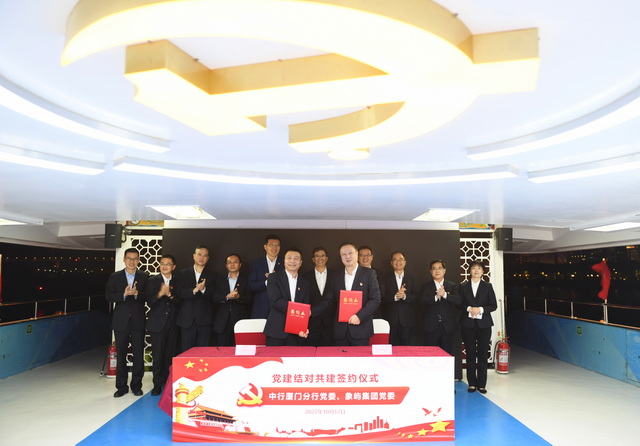 從歷史縱深處回望革命初心,賡續(xù)紅色血脈,傳承特區(qū)精神,10月12日,象嶼集團(tuán)黨委與中國(guó)銀行廈門(mén)市分行黨委在廈門(mén)黨史故事主題紅船“圖強(qiáng)號(hào)”上開(kāi)展黨建工作交流,并簽署黨建結(jié)對(duì)共建協(xié)議,以攜手深化國(guó)企黨建、推動(dòng)黨史學(xué)習(xí)教育常態(tài)化長(zhǎng)效化的實(shí)際行動(dòng),迎接黨的二十大勝利召開(kāi)。