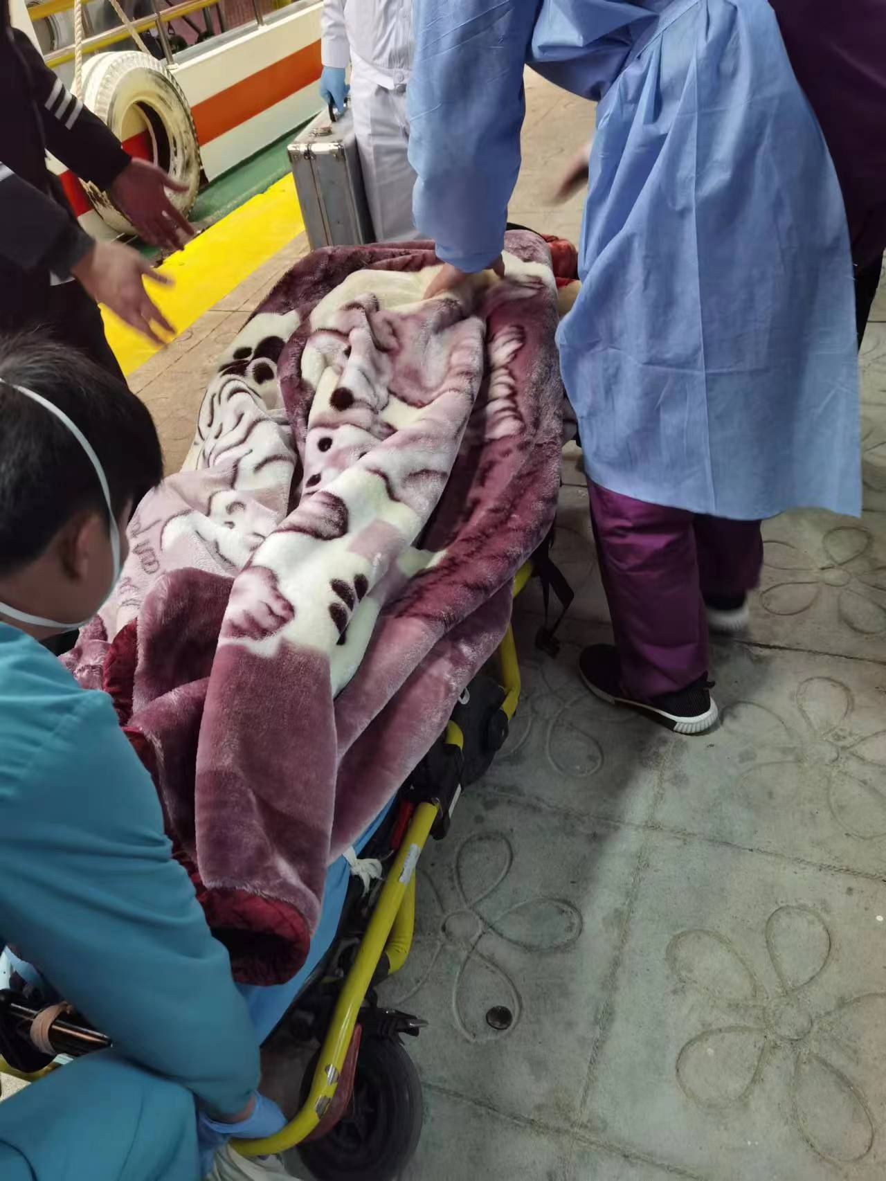 ▲將落水人員移交給醫(yī)護人員