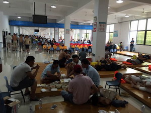 漁港停滿了來自兩岸的漁船,在工作人員的疏導(dǎo)下,漁民們也都上岸避風(fēng)了。上千漁民被安置在了漁港旁的避險(xiǎn)中心,免費(fèi)的食品是這個(gè)臺(tái)風(fēng)天最溫暖的禮物?;蚓筒停蛐菹?,由于處置得當(dāng),漁民們并沒有臺(tái)風(fēng)來臨的慌亂。有電視有空調(diào),漁民都說,也只有廈門的避險(xiǎn)中心才有這么好的條件。
