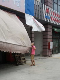 園區(qū)值班人員一邊早早通知經(jīng)營商戶檢查防臺(tái)加固,一邊隨時(shí)監(jiān)控著園區(qū)的安全狀況。