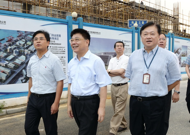 王蒙徽書記現(xiàn)場視察自貿(mào)時(shí)代廣場、兩岸貿(mào)易中心的建設(shè)情況