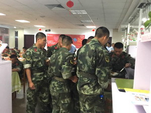 為感謝這群最可愛(ài)的人,我們?cè)趩T工餐廳精心準(zhǔn)備了營(yíng)養(yǎng)豐盛的愛(ài)心餐:紅燒肉、熏鴨,都是分量十足的硬貨;配菜新鮮,煲湯清爽,確保著營(yíng)養(yǎng)的均衡;酸奶和水果則代表了我們滿滿的心意。“再去加幾塊肉,再去添些飯?!蔽覀儫崆檎泻糁拥鼙鴤?,希望他們能多恢復(fù)些體力,多保重身體。