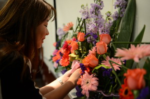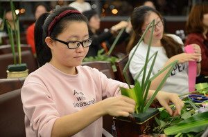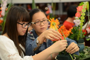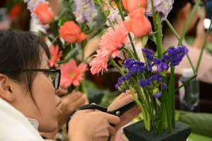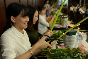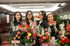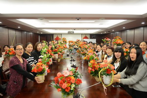 寫上對集團的祝福,女職工們辦了一個插花作品秀