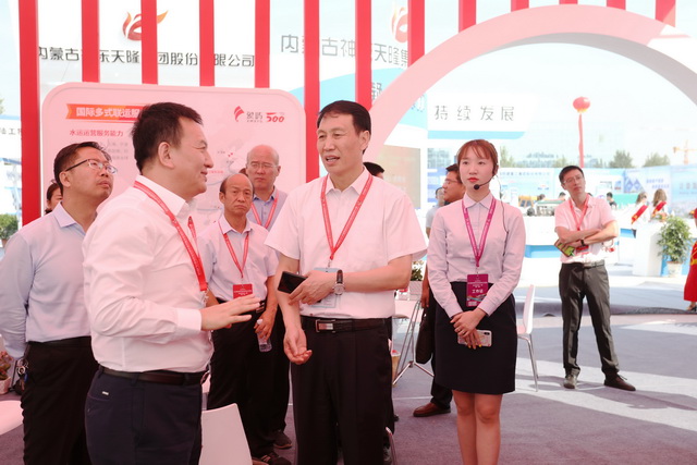 開幕式結(jié)束后,陜西省人大常委會副主任、榆林市委書記、市人大常委會主任、黨組書記戴征社,榆林市委副書記、榆林市人民政府市長李春臨等市領(lǐng)導(dǎo)率重要參會嘉賓們蒞臨象嶼集團(tuán)展位,象嶼集團(tuán)黨委副書記、總裁陳方,象嶼股份黨委委員、副總經(jīng)理程益亮,象嶼股份副總經(jīng)理張軍田,象道物流董事長溫兆仁等熱情接待。領(lǐng)導(dǎo)們駐足象嶼展位,饒有興趣地聽解說員講解象嶼國際多式聯(lián)運(yùn)服務(wù)平臺及能源化工產(chǎn)業(yè)鏈服務(wù)平臺,象嶼的發(fā)展模式得到榆林市領(lǐng)導(dǎo)及嘉賓們的高度認(rèn)可。