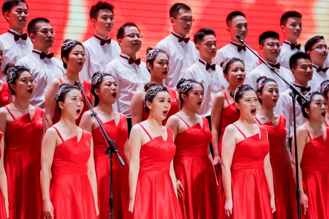 企業(yè)與國家命運緊密相連,祖國的繁榮昌盛為每個人的夢想提供了廣闊的舞臺,祖國的和諧穩(wěn)定也為每個人的夢想提供了蓬勃生長的空間。《祖國不會忘記》《我的中國心》《中國夢!飛起來》《今天是你的生日》《走向復(fù)興》……一首首澎湃的愛國主義旋律在紅色舞臺上飛揚,臺上臺下千名象嶼人和共建單位的黨員干部群眾手舞紅旗,共同輝映成一片紅色的海洋,展現(xiàn)出人民對黨、對祖國的深厚感情,呈現(xiàn)出一派積極向上、開拓進(jìn)取的精神風(fēng)貌。