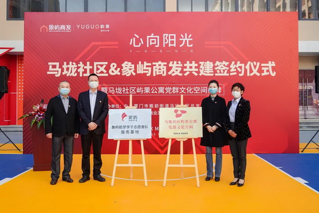 近日,廈門市湖里區(qū)殿前街道馬垅社區(qū)黨總支和象嶼商業(yè)發(fā)展聯(lián)合黨支部在廈門嶼果公寓簽約共建。殿前街道黨工委書記顏莉莉,象嶼集團(tuán)黨委副書記邵蕰默,殿前街道黨工委委員、二級(jí)調(diào)研員邱忠民出席儀式,并為馬垅社區(qū)嶼果公寓黨群文化空間揭牌。