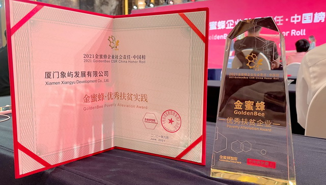 喜報(bào)!象嶼集團(tuán)投資企業(yè)象嶼發(fā)展獲評(píng)“2021金蜜蜂企業(yè)社會(huì)責(zé)任中國(guó)榜·精準(zhǔn)扶貧實(shí)踐企業(yè)”