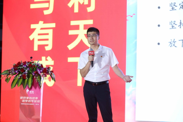 ▲廈門象嶼鋁晟黨支部書記、總經(jīng)理鄭蘆魚帶來宣講《擔(dān)當(dāng)作為者進(jìn),擔(dān)當(dāng)作為者勝》