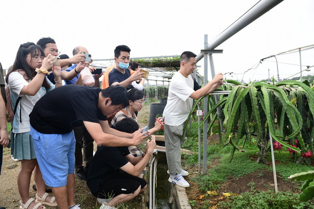二產(chǎn)方面,團隊幫助合作社提升研發(fā)能力、拓展市場渠道,實現(xiàn)年產(chǎn)值200多萬元。大宅社區(qū)合作社代表陳海云是村里的“第二產(chǎn)業(yè)促進員”。“以前,單靠種植火龍果養(yǎng)活不了那么多口人,年輕人紛紛離鄉(xiāng)找出路。如今,我們成立了火龍果專業(yè)合作社,研發(fā)了火龍果茶、火龍果酒、火龍果面條等,切實帶動了農(nóng)民增收。”陳海云說。