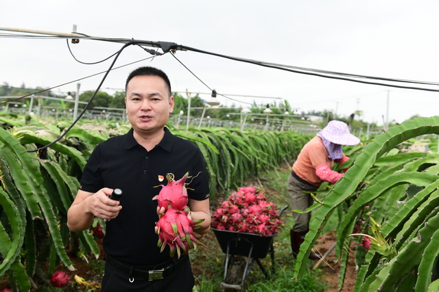 其中,在一產(chǎn)方面,團隊協(xié)同鎮(zhèn)、村梳理政策,探索種植技術(shù)升級,促進提質(zhì)增效,實現(xiàn)年產(chǎn)值超過4000萬元。經(jīng)過技術(shù)改良,他們培育的火龍果皮厚、耐儲藏、甜度高,還有黃龍果和青龍果,個頭更大、果味更香,經(jīng)濟價值也更高。