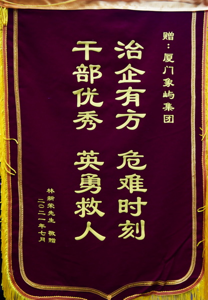 “感謝象嶼集團培養(yǎng)的好黨員、好干部給予我又一次生命!”8月2日上午,林先生將一面印有“治企有方干部優(yōu)秀 危難時刻英勇救人”的錦旗和一封感謝信送到象嶼集團,表達了他對象嶼集團員工彭華東的感激之情。8月3日出版的《廈門日報》也報道了這一救人義舉。