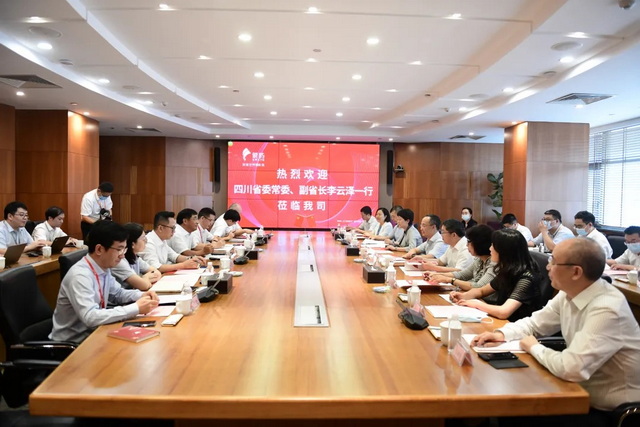 ▲四川省委常委、副省長(zhǎng)李云澤一行與象嶼集團(tuán)黨委書記、董事長(zhǎng)張水利等座談