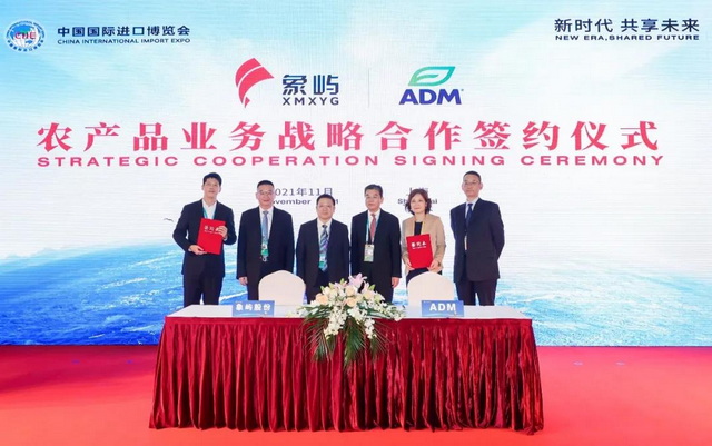簽約儀式上,國際四大糧商中的兩家——ADM和邦吉現(xiàn)身簽約臺。象嶼股份分別與兩家重量級企業(yè)以及全球領(lǐng)先的農(nóng)業(yè)綜合企業(yè)美國CHS公司簽署農(nóng)產(chǎn)品業(yè)務(wù)戰(zhàn)略合作協(xié)議。當(dāng)天上午,象嶼股份還與新加坡翱蘭國際簽約開展戰(zhàn)略合作。