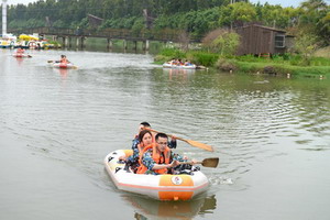 “左右開動”項目中,學(xué)員們同心協(xié)力,向前劃行