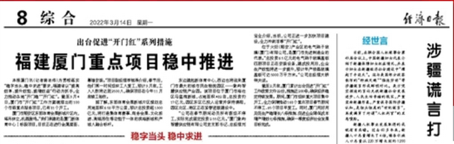 經(jīng)濟日報、人民網(wǎng)也紛紛關(guān)注報道項目“開門紅”。