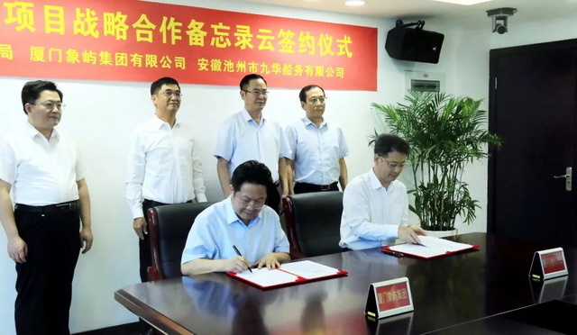 6月2日,象嶼集團(tuán)與廈門港口管理局、安徽池州市九華船務(wù)有限公司“云端”簽署戰(zhàn)略合作備忘錄,三方攜手在船舶建造、運(yùn)輸經(jīng)營、船舶融資、要素聚集等領(lǐng)域深挖合作空間,共同推進(jìn)廈門港口航運(yùn)事業(yè)做大做強(qiáng),助力廈門港口高質(zhì)量發(fā)展。廈門港口管理局黨組書記、局長夏長文,象嶼集團(tuán)黨委書記、董事長張水利,安徽九華船務(wù)董事長王國年等出席簽約儀式。