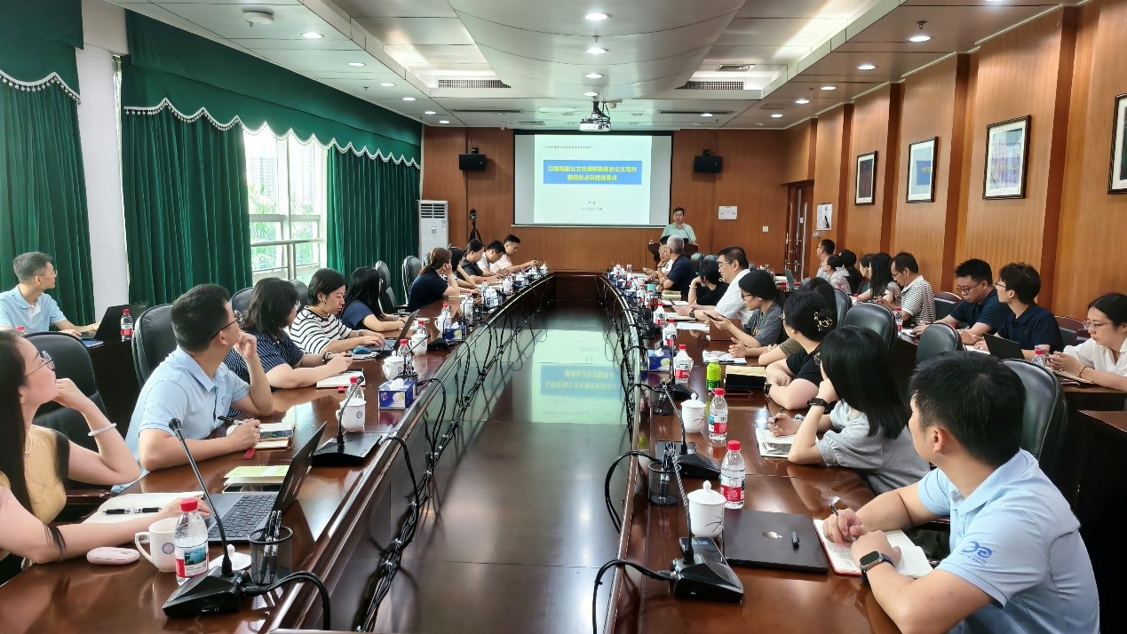 本次培訓特邀中國科學院廣州分院直屬機關黨委原專職副書記、辦公室主任郭震擔任主講。郭震圍繞“以規(guī)范的公文處理和熟練的公文寫作服務搶占科技制高點”這一主題,結合真實案例,從精準把握寫作立意、嚴格遵守寫作規(guī)范、靈活運用寫作技巧以及規(guī)避常見誤區(qū)等方面,進行了系統(tǒng)深入的專業(yè)解讀。培訓現(xiàn)場氛圍濃厚,參會人員專注聆聽、認真記錄?;迎h(huán)節(jié),大家踴躍提問、深入探討,郭震逐一細致解答并給出具體建議,交流充分、效果良好。